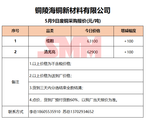 今日铜陵海铜,废铜采购报价已更新,有货的朋友欢迎联系我们!