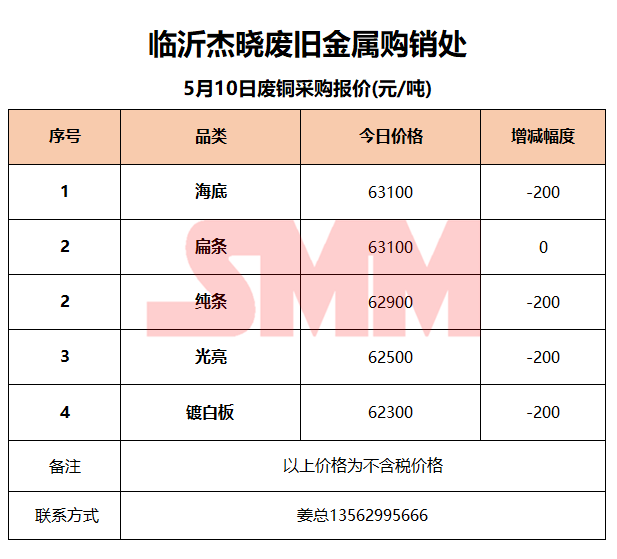 5月10日临沂杰晓 废铜采购报价