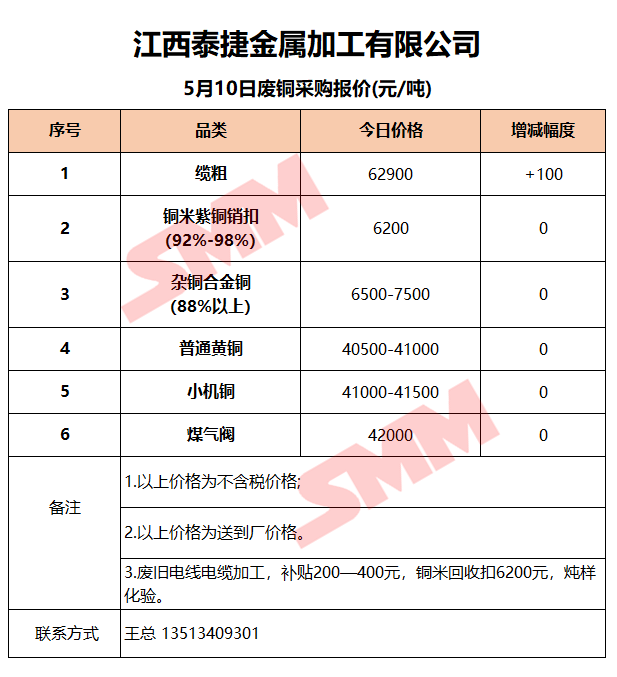 5月10日江西泰捷 废铜采购报价