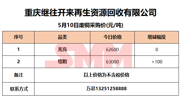 5月10日重庆继往开来 废铜采购报价