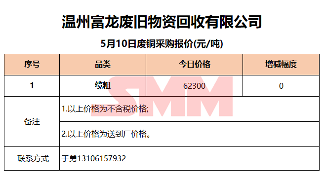 5月10日温州富龙废旧 废铜采购报价