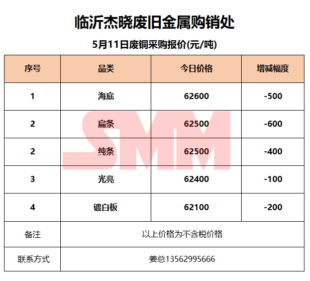 5月11日临沂杰晓 废铜采购报价
