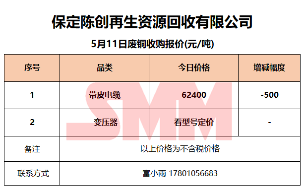今日保定陈创再生资源,废金属收购报价已更新,有货的朋友欢迎联系我们!