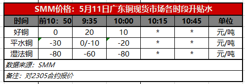 5月11日广东铜现货市场各时段升贴水(第二时段10:00)【SMM价格】
