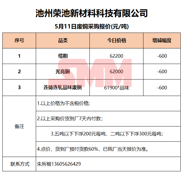 5月11日池州荣池 废铜采购报价