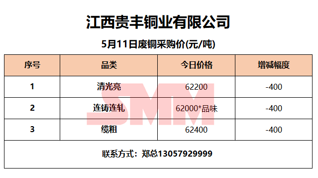 5月11日江西贵丰 废铜采购报价
