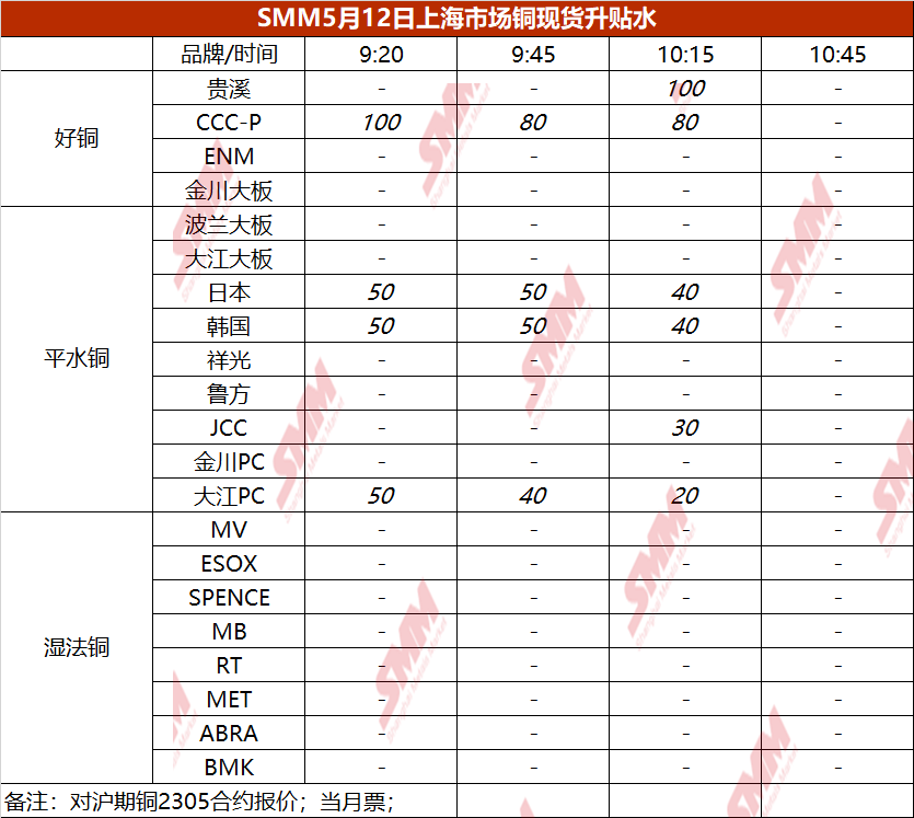 5月12日上海市场铜现货升贴水(第三时段)【SMM价格】