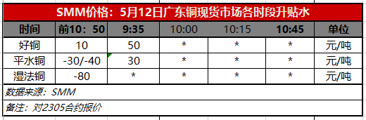 5月12日广东铜现货市场各时段升贴水(第一时段9:35)【SMM价格】