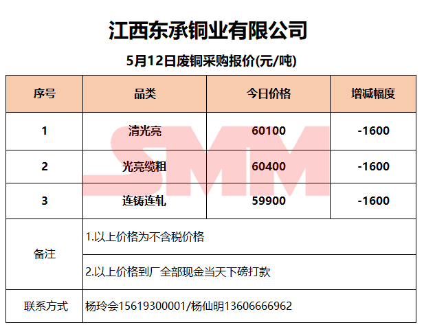 今日江西东承铜业/博升铜业 废铜采购报价已更新,有货的朋友欢迎联系我们!