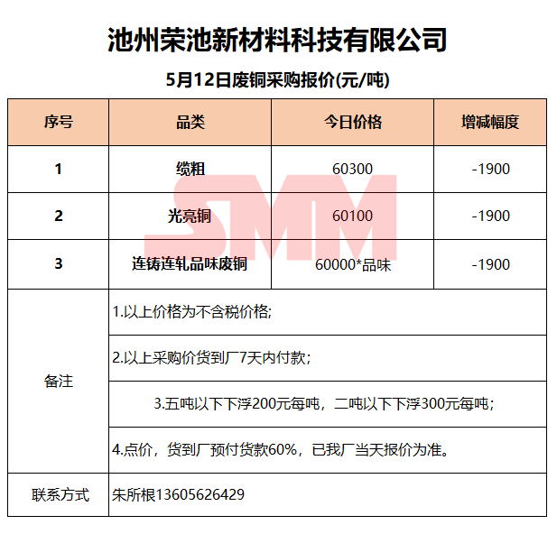 5月12日池州荣池 废铜采购报价