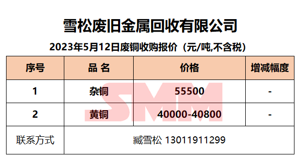 5月12日雪松废旧 废铜收购报价
