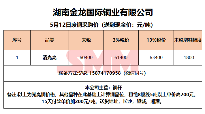 今日湖南金龙,废铜采购报价已更新,有货的朋友欢迎联系我们!