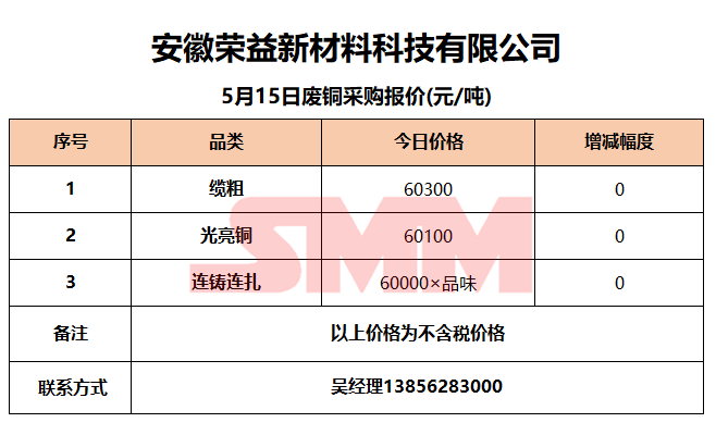 今日安徽荣益新材料,废铜采购报价已更新,有货的朋友欢迎联系我们!