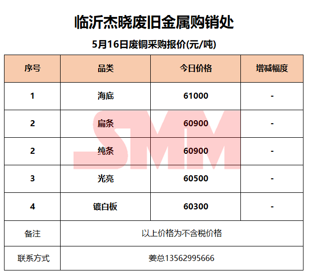 5月16日临沂杰晓 废铜采购报价