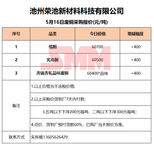 5月16日池州荣池 废铜采购报价