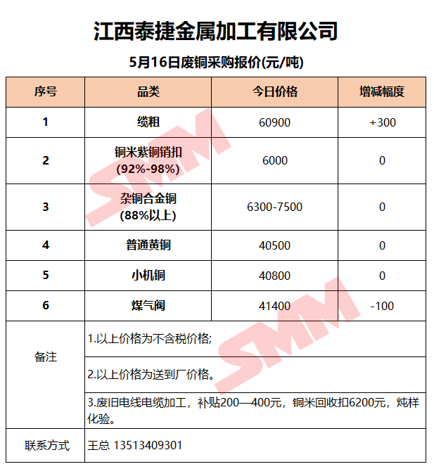 5月16日江西泰捷 废铜采购报价
