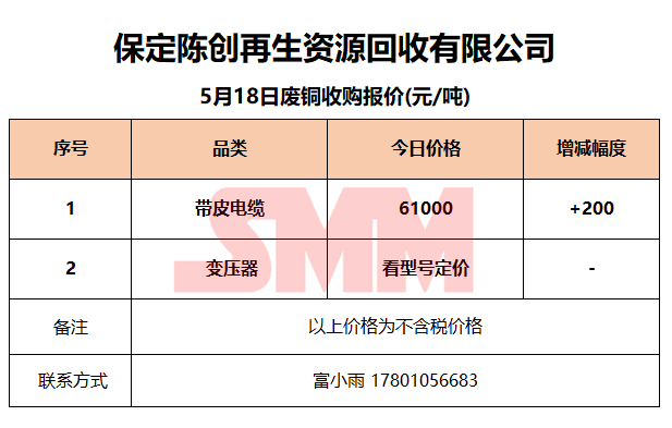 今日保定陈创再生资源,废金属收购报价已更新,有货的朋友欢迎联系我们!