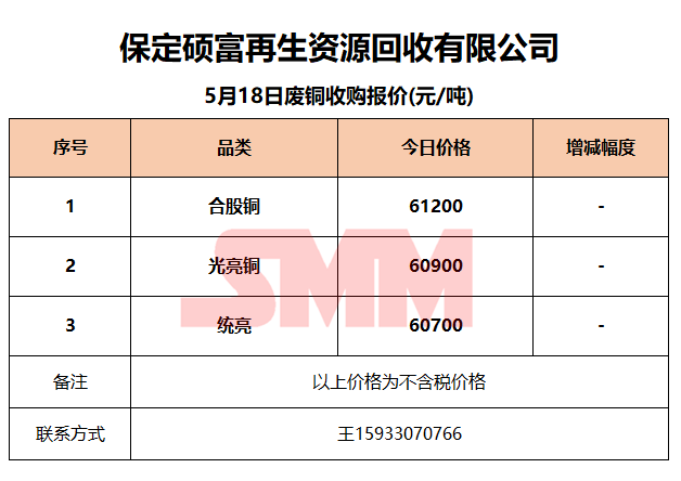 今日保定硕富 ,废铜收购报价已更新,有货的朋友欢迎联系我们!