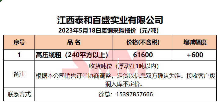 5月18日江西泰和 废铜采购报价