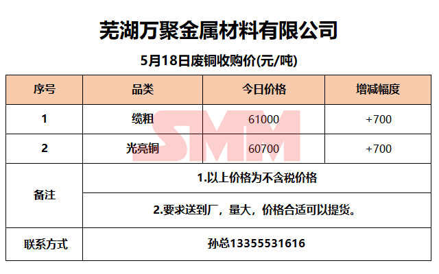 今日芜湖万聚金属,废铜收购报价已更新,有货的朋友欢迎联系我们!