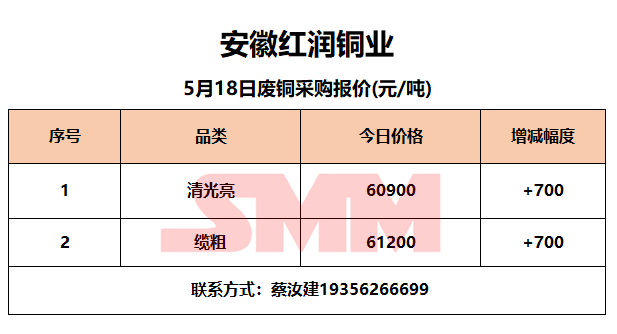 今日安徽红润铜业,废铜采购报价已更新,有货的朋友欢迎联系我们!