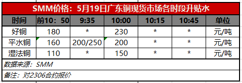 5月19日广东铜现货市场各时段升贴水(第二时段10:00)【SMM价格】