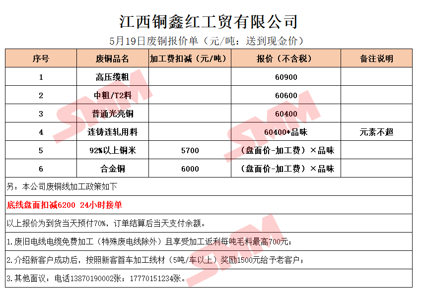 5月19日江西铜鑫红 废铜采购报价
