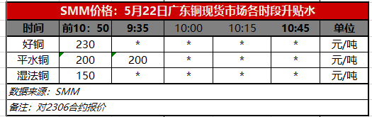 5月22日广东铜现货市场各时段升贴水(第一时段9:35)【SMM价格】