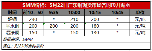 5月22日广东铜现货市场各时段升贴水(第三时段10:15)【SMM价格】