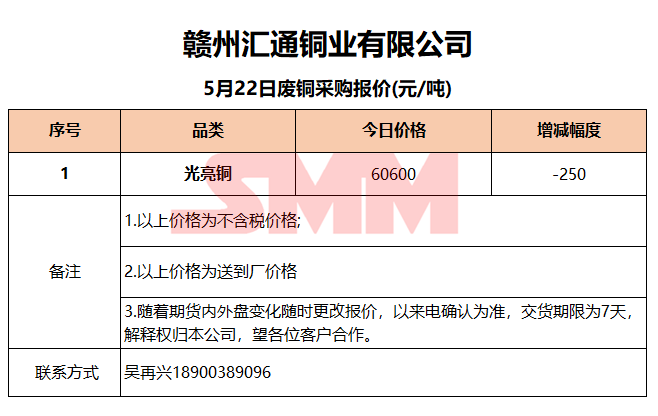 5月22日赣州汇通 废铜采购报价