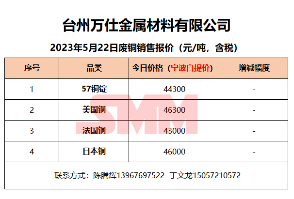 今日台州万仕金属,废铜销售报价已更新,有货的朋友欢迎联系我们!