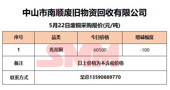 5月22日中山南顺 废铜采购报价