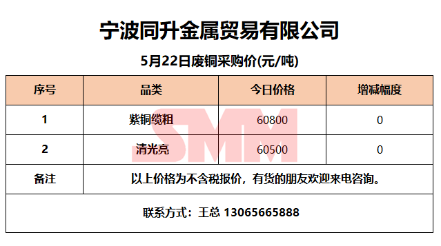 今日宁波同升金属,废铜采购报价已更新,有货的朋友欢迎联系我们!