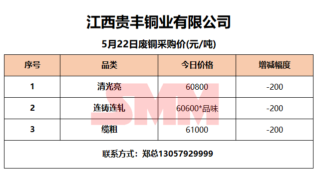 今日江西贵丰铜业,废铜采购报价已更新,有货的朋友欢迎联系我们!