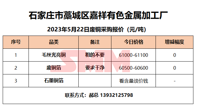 5月22日嘉祥有色金属 废铜采购报价