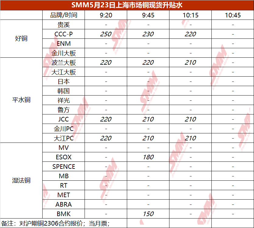 5月23日上海市场铜现货升贴水(第三时段)【SMM价格】