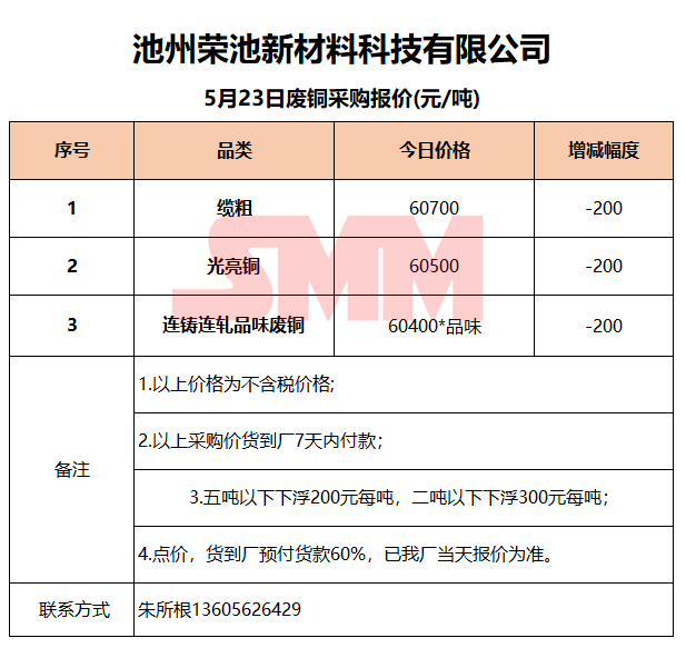 5月23日池州荣池 废铜采购报价