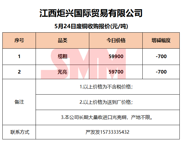 今日江西炬兴,废铜收购报价已更新,有货的朋友欢迎联系我们!