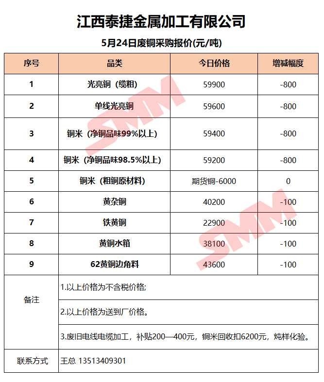 5月24日江西泰捷 废铜采购报价