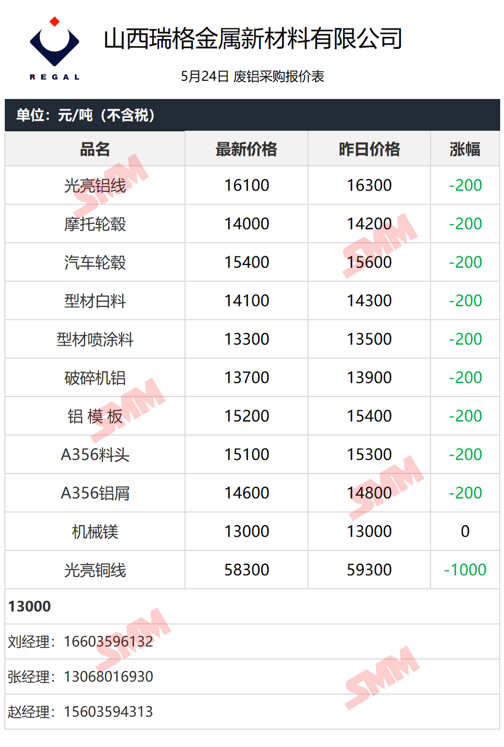今日山西瑞格金属 废铝采购报价已更新,有货的朋友欢迎联系我们!