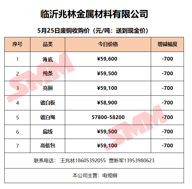 5月25日临沂兆林金属 废铜收购报价