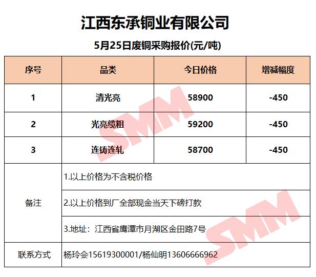 5月25日江西东承 废铜采购报价