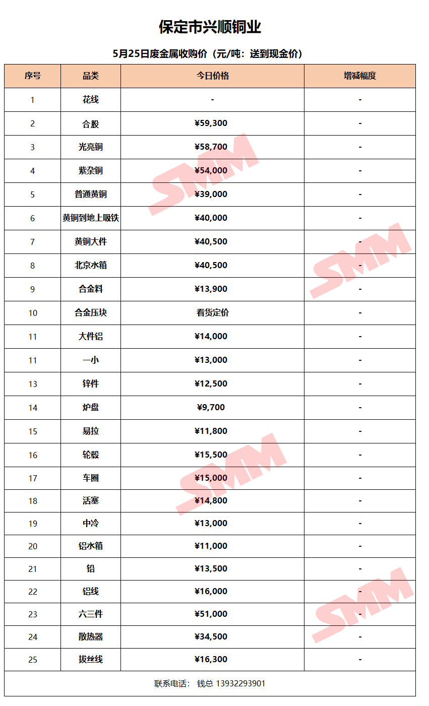 今日保定兴顺铜业,废金属收购报价已更新,有货的朋友欢迎联系我们!