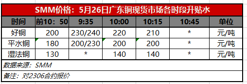 5月26日广东铜现货市场各时段升贴水(第三时段10:15)【SMM价格】