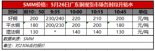 5月26日广东铜现货市场各时段升贴水(第四时段10:45)【SMM价格】