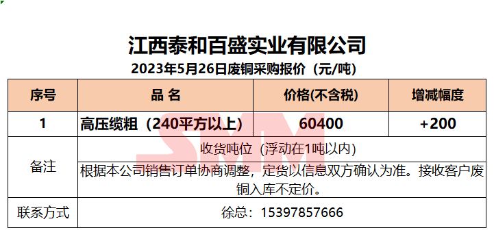 5月26日江西泰和 废铜采购报价