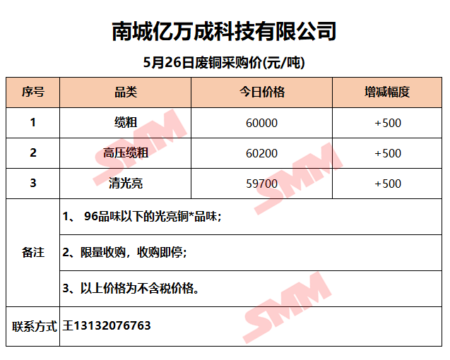 5月26日江西亿万成 废铜采购报价