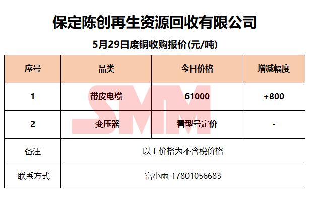 5月29日保定陈创 废金属收购报价