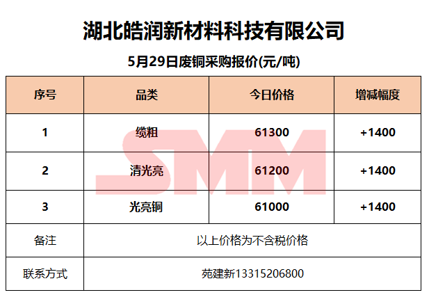 5月29日湖北皓润 废铜采购报价