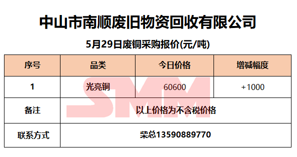5月29日中山南顺 废铜采购报价